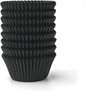 แผ่นรองคัพเค้กสีดำมาตรฐาน200ชิ้นสำหรับการอบห่อคัพเค้กเกรดอาหารกันไขมันแผ่นรองมัฟฟินสำหรับตกแต่ง